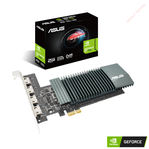ASUS GeForce® GT 710 se 4 porty HDMI a pasivním chlazením umožňujícím tichou produktivitu zobrazenou na více monitorech.
